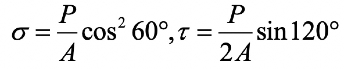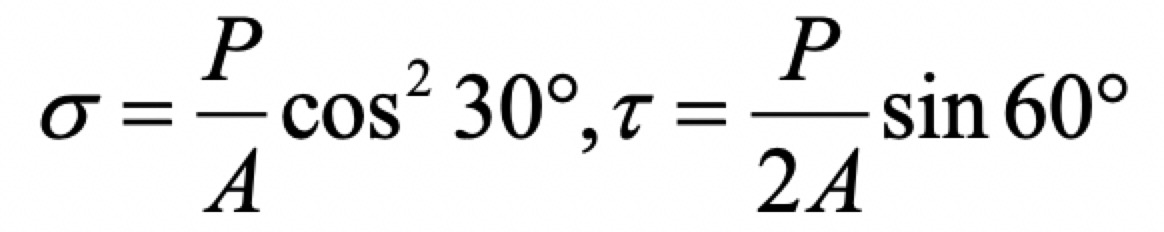 等直杆两端受轴向载荷作用,其横截面面积为A,则n-n斜截面上的正应力和切应力为( )。
